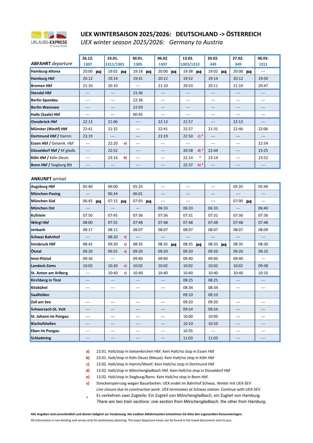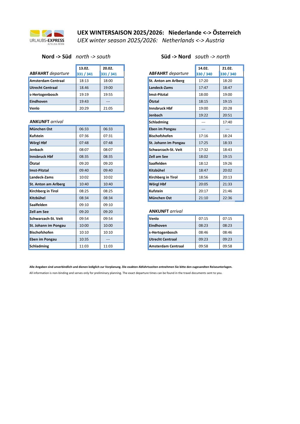 DIE UEX-WINTERFAHRPLÄNE 2026